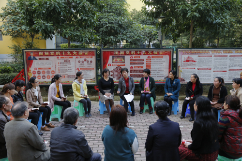 宣讲会后,陈菊如来到明秀南社区与社区工作人员、居民群众进行互动交流。