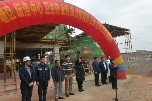 12月2日,坛洛中心卫生院业务综合楼主体顺利封顶,政府区长陆广平、政府副区长梁红英参加封顶仪式活动。