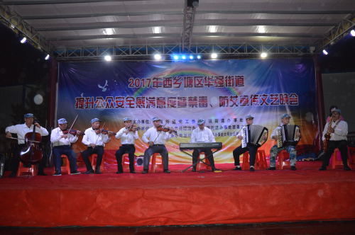 2017年12月28日晚,华强街道在大同社区水街百姓小舞台开展“学习贯彻党的十九大精神,深化推进华强法治精神实践,服务为百姓,共建幸福华强”为主题,“12.4”国家宪法日宣传 提升群众安全感暨禁毒防艾专题宣传文艺晚会,华强街道党工委委员、武装部长唐建平、人大工委副主任邓杰亨等领导参加活动,华强街道及各社区工作人员、华强派出所、居民代表、老党员约200多人,冒雨观看晚会。