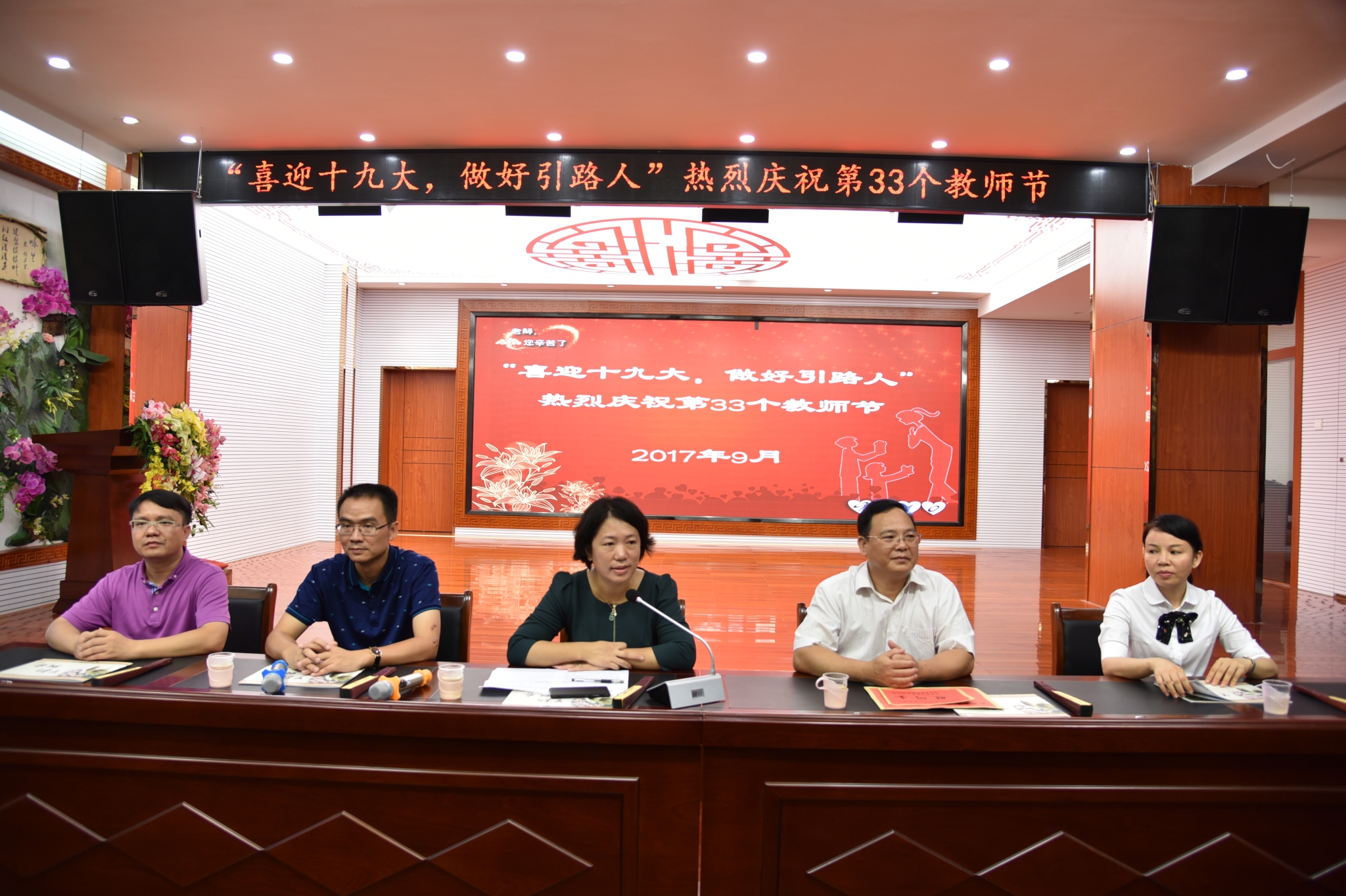 在阶梯教室“百兰阁”里,陆区长首先代表党委政府对学校全体教职员工表示诚挚的问候,诚祝老师们教师节快乐、幸福安康!接着对近年来的办学特色、教育教学、标准化建设等方面取得的骄人成绩给予高度评价,并提出殷切希望,希望学校紧抓“十三五”规划的教育改革契机,在“学在西乡塘”教育品牌的引领下,不断夯实“兰韵飘香”特色文化,努力打造一支“蕙质兰心”的教师队伍,培养“正心雅行,秀外慧中”的现代“兰君子”,让“秀如兰?香致远”的口号响彻绿城,走向全国。